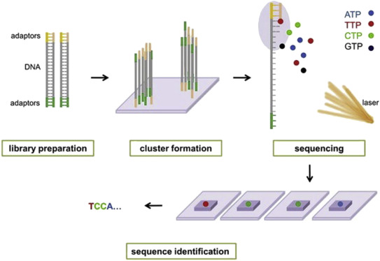 - Illumina/Solexa: A DNA polymerase incorporates fluorescently labeled, chain-terminating nucleotides. Each incorporation event is imaged to identify the nucleotide.