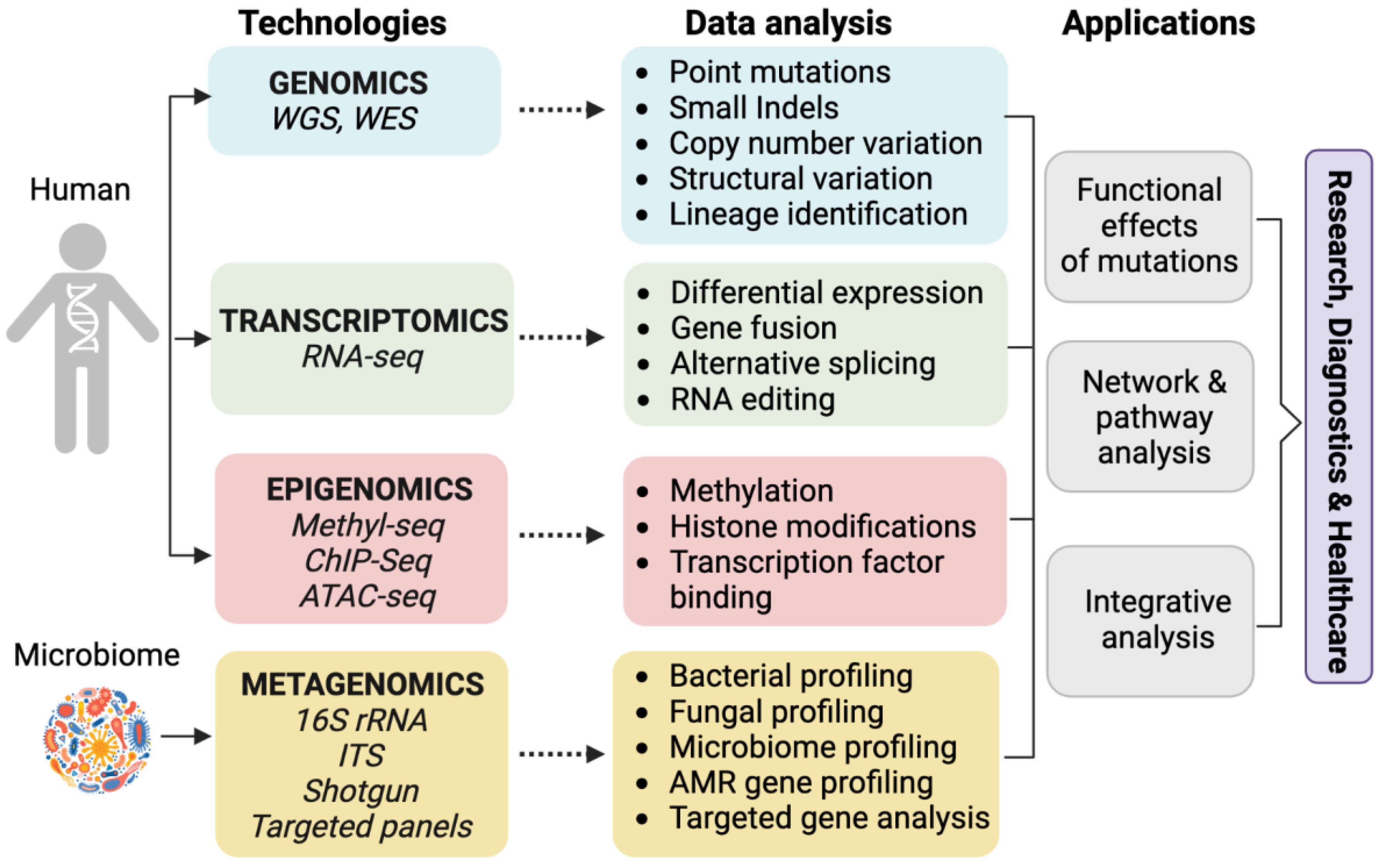 - Data preprocessing – Quality control, trimming low-quality reads, and filtering contaminants to prepare clean data.
