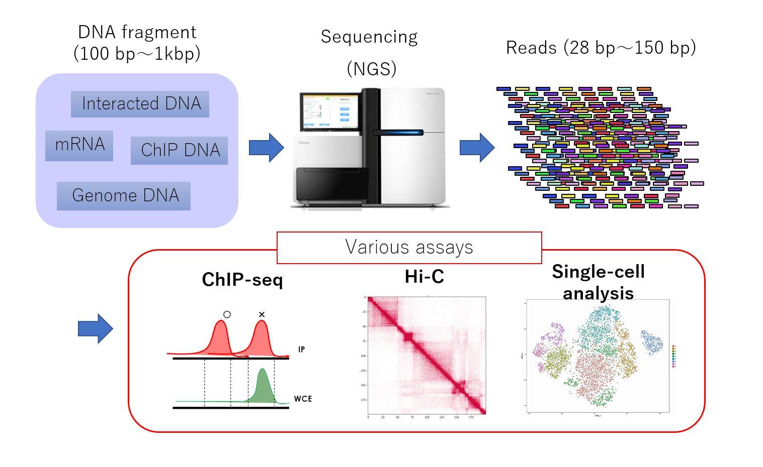 NGS input and output may appear similar, but analysis and interpretation depend on the type of fragments and the biological questions.