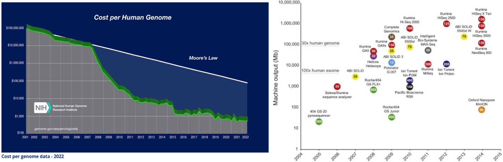 Image credits.(Left) NIH-NHGRI - The Cost of Sequencing a Human Genome; (right) Mol Cell. 2015 May 21