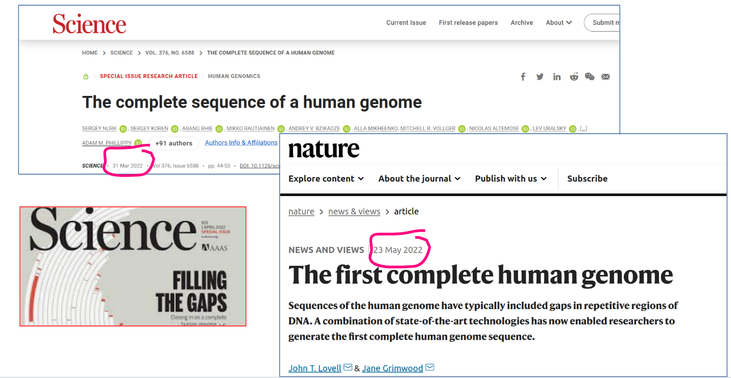 The combined use of two third-generation sequencing technologies—specifically, the PacBio HiFi DNA sequencing method, which can read about 20,000 bases with nearly perfect accuracy, and the Oxford Nanopore DNA sequencing method, which can read up to 1 million bases at a time with more modest accuracy — made it possible to obtain the first complete human genome sequence in March 2022. Thanks to the long reads generated by these technologies, the final 8% of the human genome, consisting primarily of highly repetitive sequences that could not be resolved during the Human Genome Project and were long considered unreachable, has now been completed. In total, nearly 200 million bases were added to the human genome in this effort.